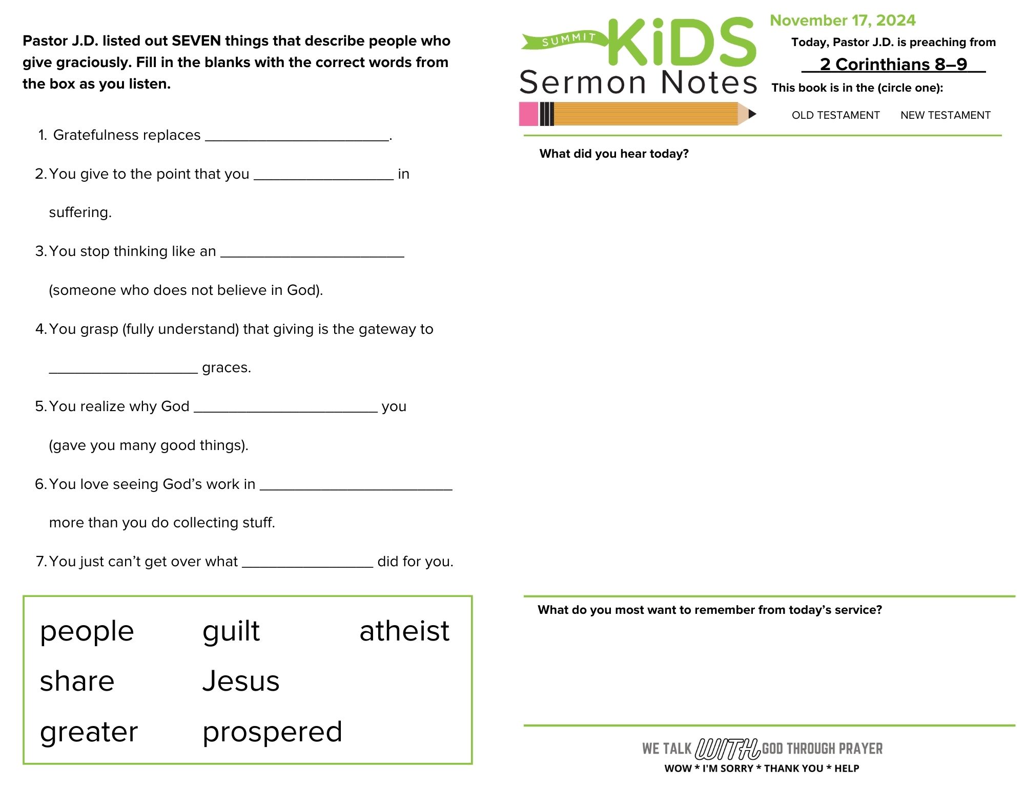 With the holidays fast approaching, along with the feeling that you are constantly inundated with ads, you'll likely pick up on a common thread: The accumulation of more things equals happiness. But with a "never enough" mindset, it's impossible to be what God desires us to be: cheerful givers. In this week's message from 2 Corinthians 8–9, Pastor J.D. helps us to see a kind of giving that is motivated not by guilt, but as a response to the grace that we have received. When we have this as our focus, we can move from asking, "What must I give?" to "What do I get to give?"