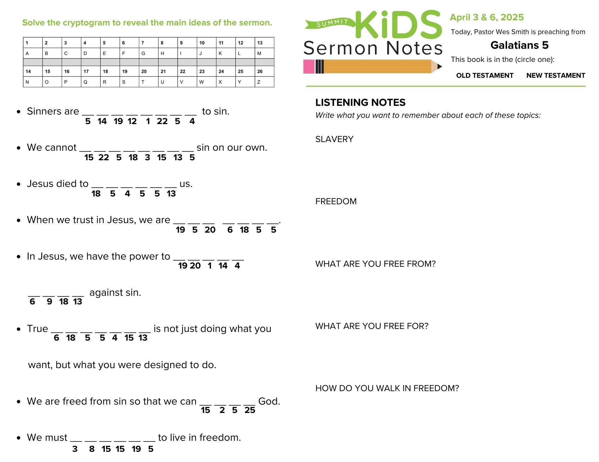 We love the idea of freedom, but what does it really mean? Clearly, the freedom offered by the world is drastically different from that offered by Christ. In this week's message from Galatians 5, Pastor Wes Smith shows us how in Christ, we are set free both from and to certain things. And through the power of the Holy Spirit, we are able to do what we were designed to do—live in obedience by loving God and loving others.