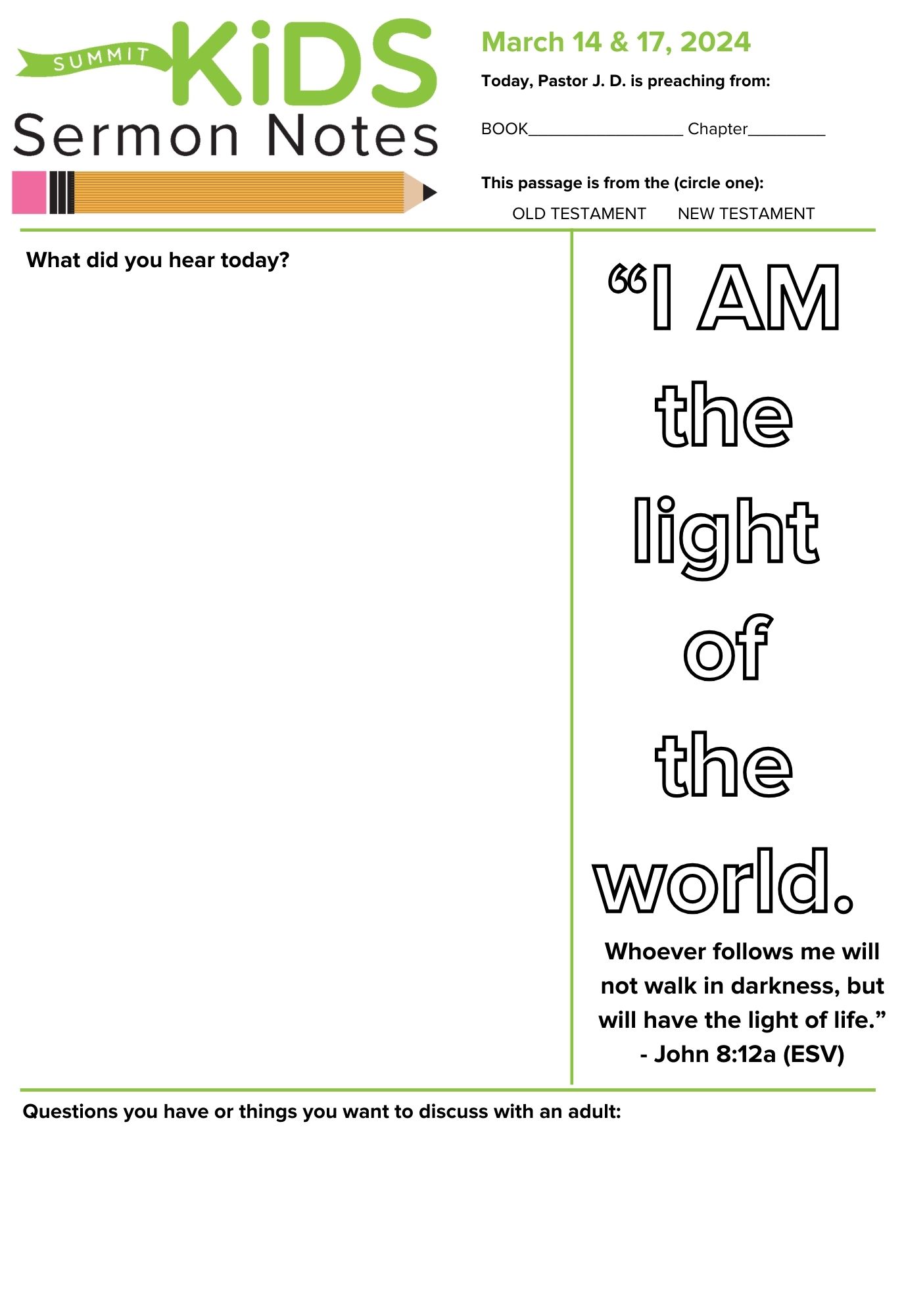 No matter what side of the "daylight saving time" debate we find ourselves on, we all have to at least acknowledge that light is essential for life, for a myriad of reasons. So Jesus' declaration that he is "the light of the world" was truly a bold claim. In this week's message from John 8, Pastor J.D. shows us how Jesus' light is one that doesn't merely reveal our sin, but ultimately, it heals us. As a result, we shouldn't feel as though we have to hide in the darkness—on the contrary, we can be the ones who radiate the light of Jesus in the midst of this darkness.
