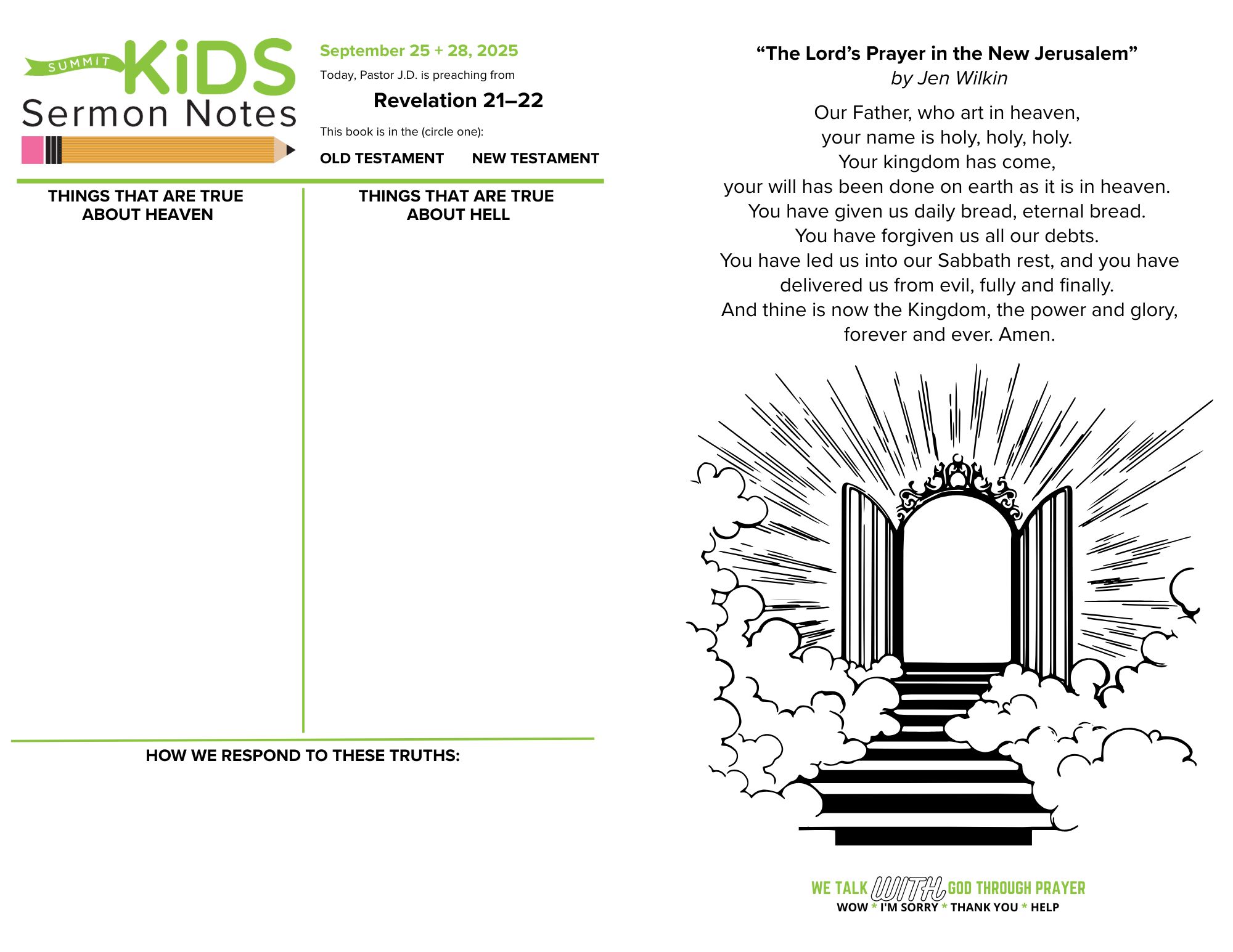 The final chapters of the book of Revelation present the end of the world as we know it—but there's also a glorious beginning. In this week’s message from Revelation 21–22, Pastor J.D. walks us through the vision of a new heaven and a new earth described by the Apostle John. The fact that God will once again dwell with his people should cause all of us to rejoice. But the fact that those who reject God will not experience this reunion with him should motivate us to share the gospel with urgency, inviting people to put their faith in the God who delights in making all things new.