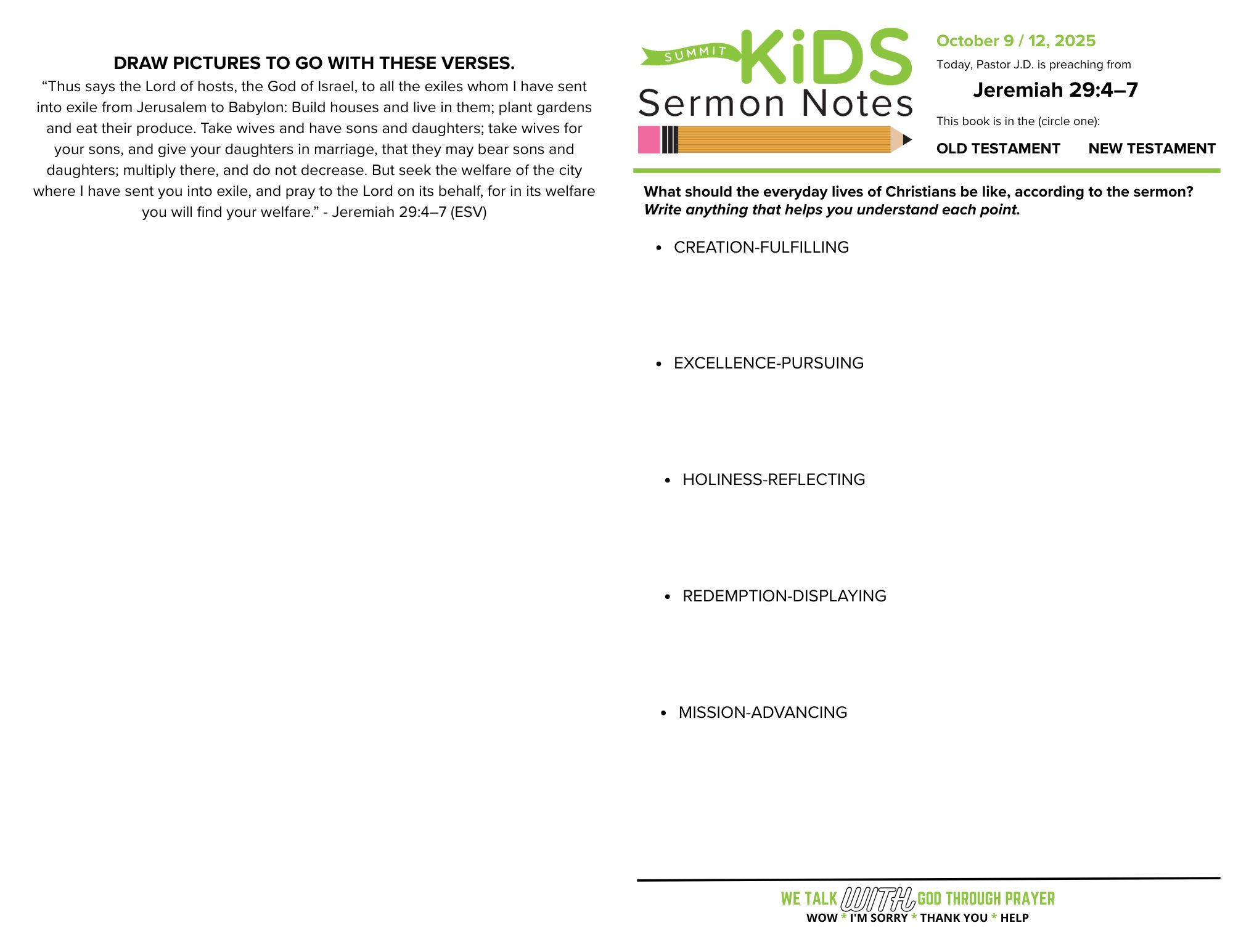 What does a bold, faithful witness to Jesus look like in 2025? After all, we're living in an age where Christianity is increasingly viewed as a problem, even an obstacle to be removed. In this week's message from Jeremiah 29, Pastor J.D. helps us see that we have a vital part to play in the renewal of our city. As we do our jobs with excellence, integrity, and grace, we not only reflect the gospel, but we ultimately display a foretaste of the world as God intended it to be.